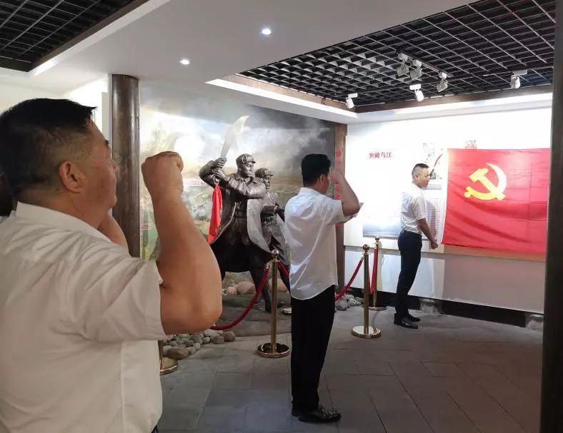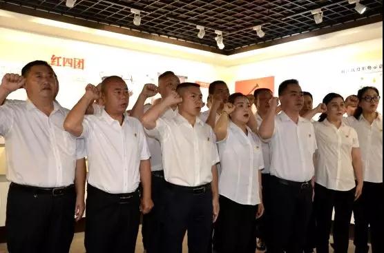 在陳列館內(nèi),陳春生書記帶領全體黨員、入黨積極分子面對黨旗重溫了入黨誓詞,鏗鏘的誓言響徹在紀念館內(nèi),使每位黨員再一次接受了心靈的洗禮,堅定了初心,牢記了使命。