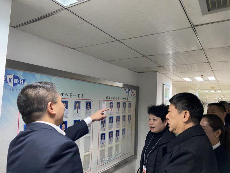 2020年1月17日上午九點(diǎn)十分,貴陽(yáng)市新成立的保安協(xié)會(huì)會(huì)長(zhǎng)劉毅一行到貴州陟翔保安有限公司進(jìn)行指導(dǎo)、慰問(wèn),總公司總經(jīng)理馮波、常務(wù)副總張小慶、黨支部書(shū)記李明澤、保安公司一區(qū)域經(jīng)理劉帆及相關(guān)部門同志陪同。