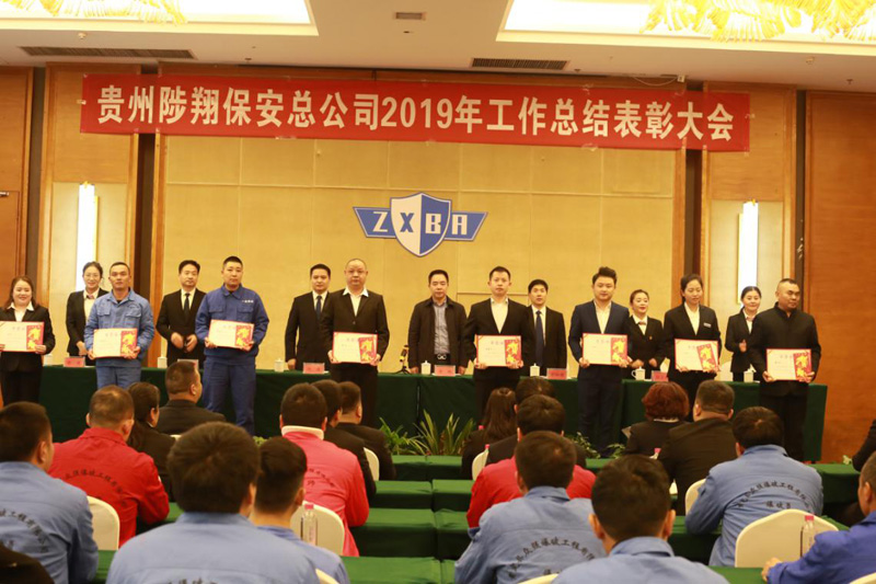 2020年1月20日下午,貴州陟翔保安總公司2019年度工作總結(jié)表彰大會在貴定縣御庭酒店會議室召開。總公司股東李鵠、羅仕銀、總經(jīng)理馮波、副總經(jīng)理陳春生、余艷、財務(wù)總監(jiān)楊長碧出席會議,各分公司、項目部、培訓(xùn)學(xué)校負(fù)責(zé)人、總公司全體人員、分公司員工代表、受到表彰的先進(jìn)單位代表和先進(jìn)個人參加會議。總公司常務(wù)副總經(jīng)理張小慶主持會議。