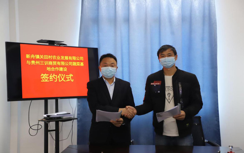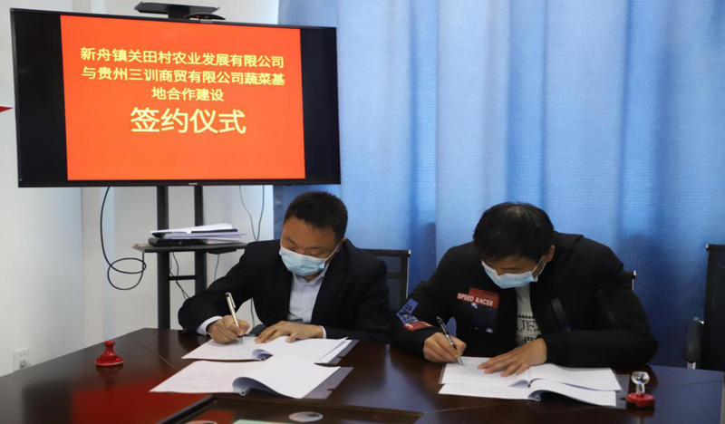根據(jù)公司發(fā)展生態(tài)農業(yè)戰(zhàn)略部署,結合貴州省遵義市新蒲新區(qū)新舟鎮(zhèn)關田村鞏固脫貧攻堅成果工作計劃,經公司與關田村村委會多次溝通協(xié)商,本著“因地制宜、特色產業(yè)、長遠規(guī)劃、合作共贏”原則,我公司旗下貴州三訓商貿有限公司和關田村村屬企業(yè)關田村農業(yè)發(fā)展有限公司就共同打造關田村種養(yǎng)基地(蔬菜種植、禽畜養(yǎng)殖)事宜達成一致協(xié)議。2020年4月22日上午在關田村村委會會議室舉行簽約儀式。關田村村支書吳應軍、主任黃國、種植專家陳明剛出席簽約儀式,總公司股東代表羅仕銀、貴州三訓商貿有限公司負責人王訓強、貴州陟翔保安有限公司遵義分公司負責人羅曉明參加簽約儀式。吳應軍與王訓強分別代表雙方簽署合作協(xié)議。