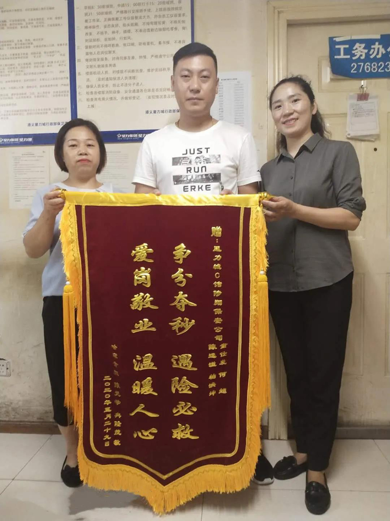 經(jīng)半個(gè)多月的治療,患者于2020年7月7日康復(fù)出院。出院后,患者在家屬的陪同下,將一面印有“爭(zhēng)分奪秒、遇險(xiǎn)必救、愛(ài)崗敬業(yè)、溫暖人心”的錦旗送至我公司駐點(diǎn)星力城保安隊(duì)員手中,并再三表示感謝。隊(duì)員們紛紛表示:“這是我們的份內(nèi)之事,我們的職責(zé)就是為業(yè)主和客人的安全保駕護(hù)航”。