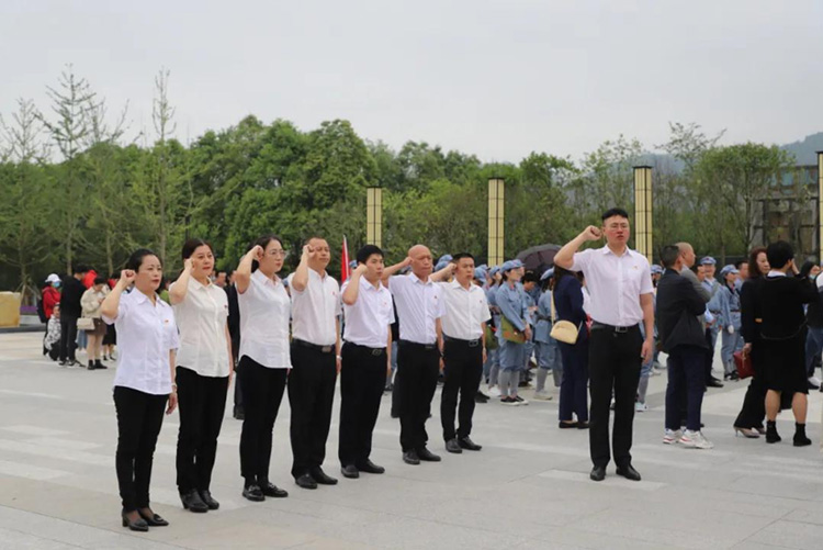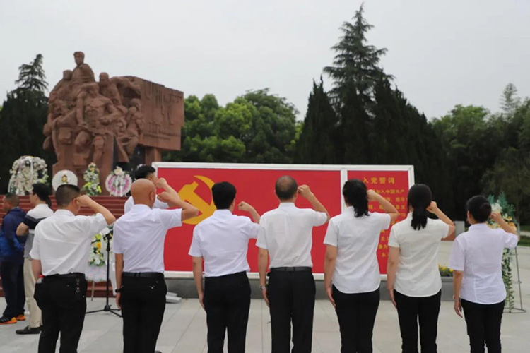 參觀結(jié)束后,全體黨員在紀(jì)念碑處重溫入黨誓詞,用心感受革命先烈們?cè)谶@里用熱血做出的斗爭和用生命抒寫的初心和使命。