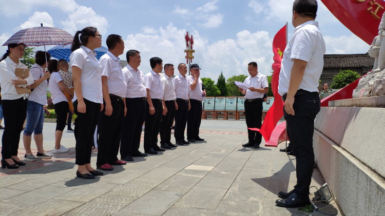 在位于甕安縣的猴場會議紀(jì)念館,全體黨員、預(yù)備黨員肅立在革命烈士雕像前,舉起右手,重溫了加入中國共產(chǎn)黨時的宣誓詞。短短幾十字的宣誓詞,無形之中在警醒、提示和規(guī)范每一位黨員同志的先鋒模范作用。