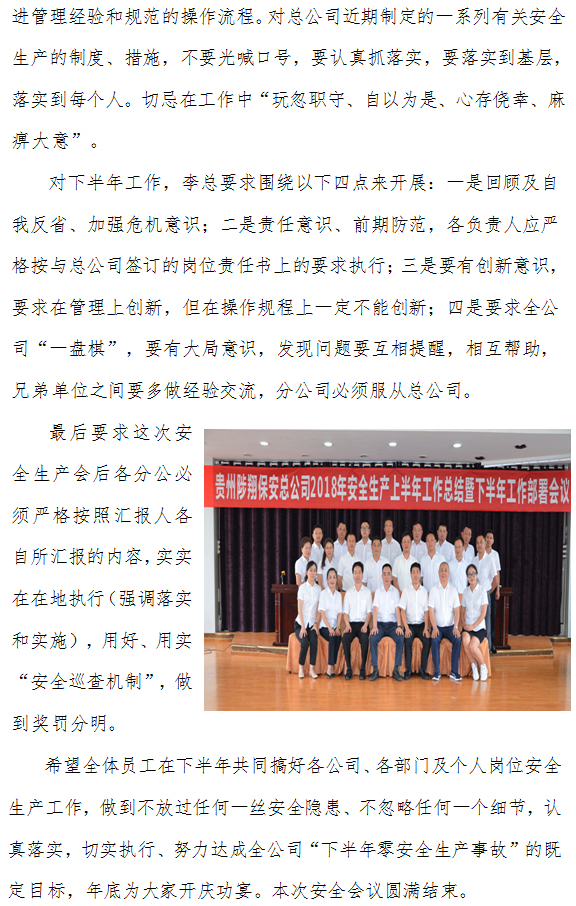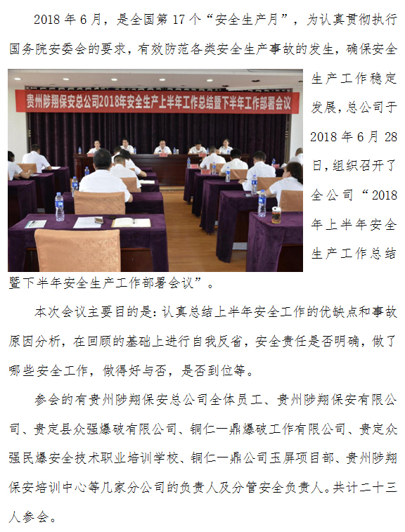 > 2018年上半年安全生產(chǎn)工作總結(jié)暨 下半年安全生產(chǎn)工作部署會議