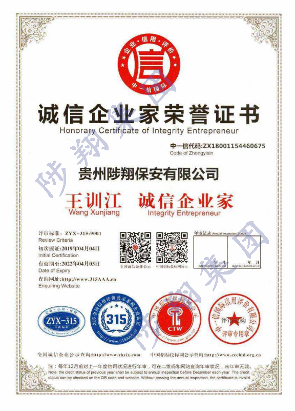 誠信企業(yè)家榮譽(yù)證書